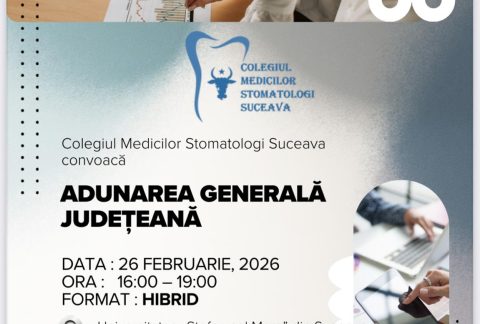 Colegiul Medicilor Stomatologi Suceava vă invită la cursul: Restaurări protetice pe implanturi în zona estetică- Conf. Universitar Doctor Dan Pătroi 13 martie 202613 martie 2026