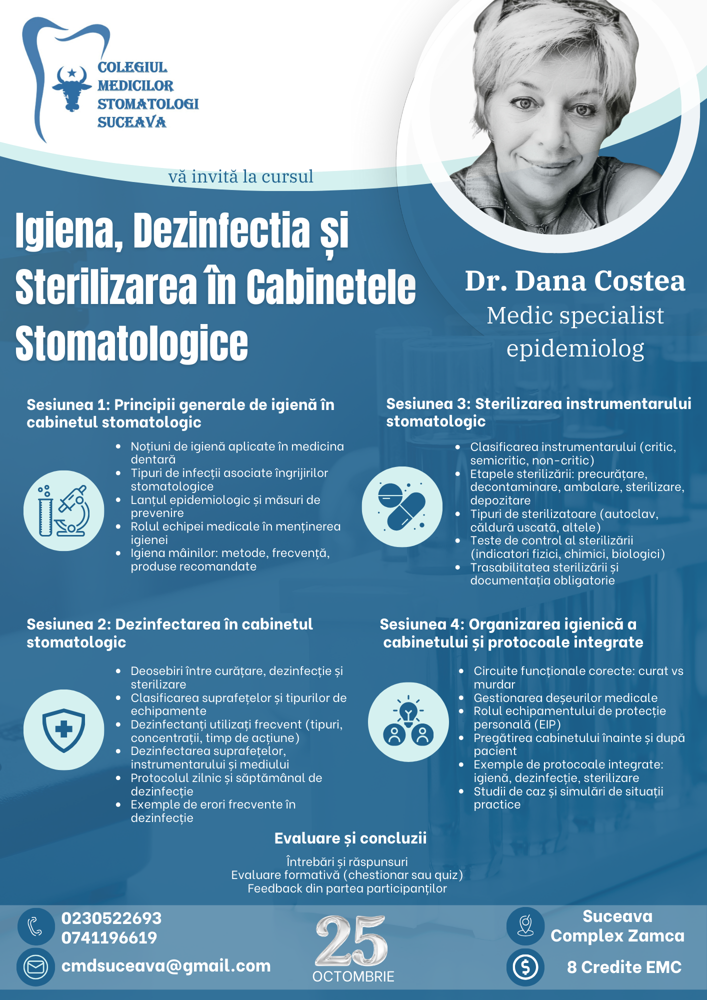 Cursul este FĂRĂ TAXĂ pentru membrii CMS Suceava și pentru membrii altor județe care își desfășoară activitatea în Județul Suceava.